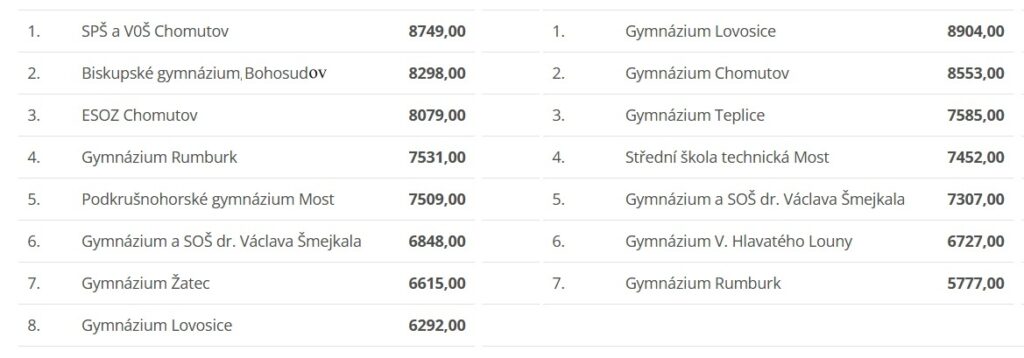 Středoškolský pohár vyvrcholil v Ústeckém kraji finálovým závodem v Ústí nad Labem. Krajské finále mělo jasné vítěze. V soutěži dorostenců byli nejlepší studenti SPŠ a VOŠ Chomutov. V sestavě vítězů byli také sprinteři VTŽ Chomutov Marek Liška a Patrik Tischler. V soutěži dorostenek neměly konkurenci studentky Gymnázia Lovosice. Nejvíce bodů získaly sprinterka Eliška Sedláková a Barbora Kubínová nebo skokanka Monika Nedorostová. Celkem jsme v kraji uspořádali šest okresních kol. Závodů se zúčastnilo celkem 69 družstev. Mezi všemi kraji ČR jsme skončili v této statistice na třetím místě za suverénním Středočeským krajem (112 družstev) a o jedno družstvo také za Jihomoravským krajem (70 družstev).