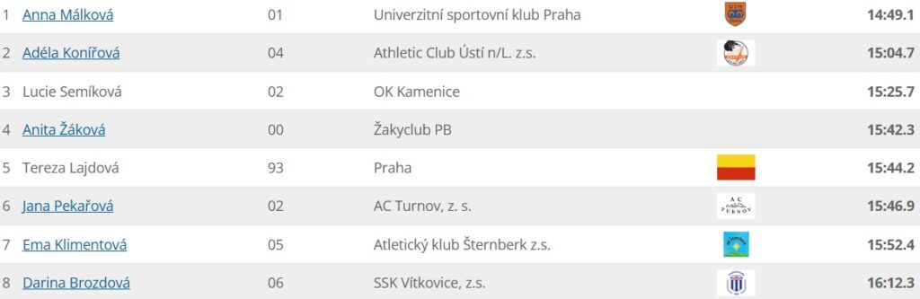 Adéla Konířová (AC Ústí) se vrátila ze soustředění v italských Dolomitech ve výborné formě. Na akademickém mistrovství ČR v přespolním běhu doběhla druhá za Annou Málkovou. Radek Letocha (AK Bílina) skončil osmý v kategorii mužů. Závod byl součástí Běhu 17. listopadu v Praze. Pořadatelé z ČVUT Praha připravili trať tradičně v přírodní rezervaci Obora Hvězda. Muži závodili na trati 9000 metrů a ženy na 4 400 metrů.